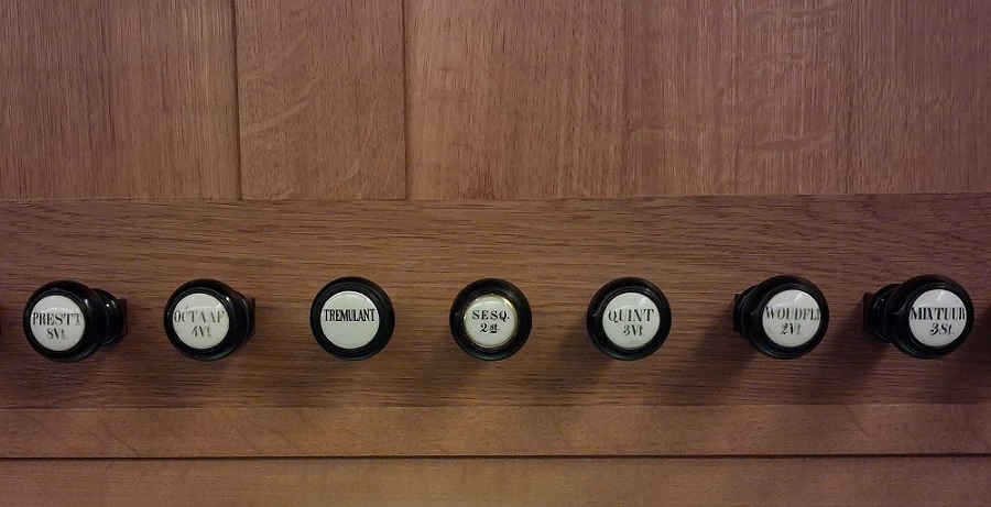 messing asjes met schroefdraad. Op de registerknop van de Sesquialter